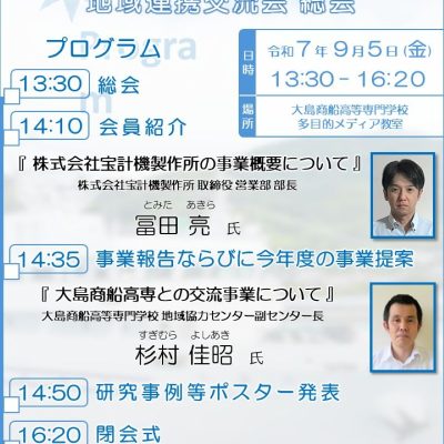 2025年07月17日令和7年度 大島商船高等専門学校 地域連携交流会 総会 が開催されます。